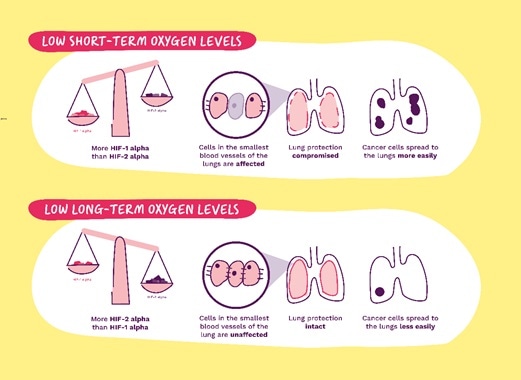 We verified that too much HIF-1a in the endothelium made it more permeable or porous, which made it easier for cancer cells to exit the blood circulation into the lung tissue. Also, having more HIF-1a created an inflammatory environment that favored the growth of these cells in the lung tissue, meaning they more easily grew into tumors.