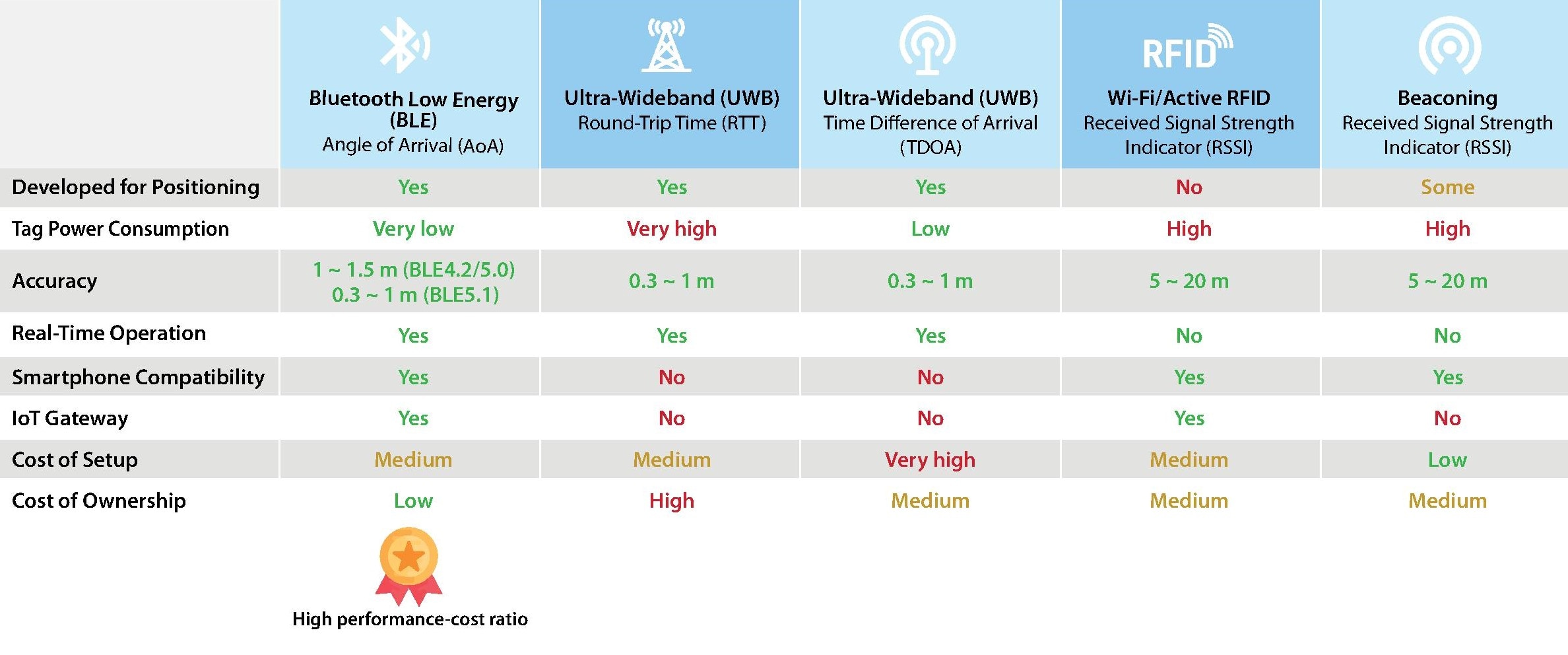 - Bluetooth tags offer reliable detection accuracy up to 1.5 meters