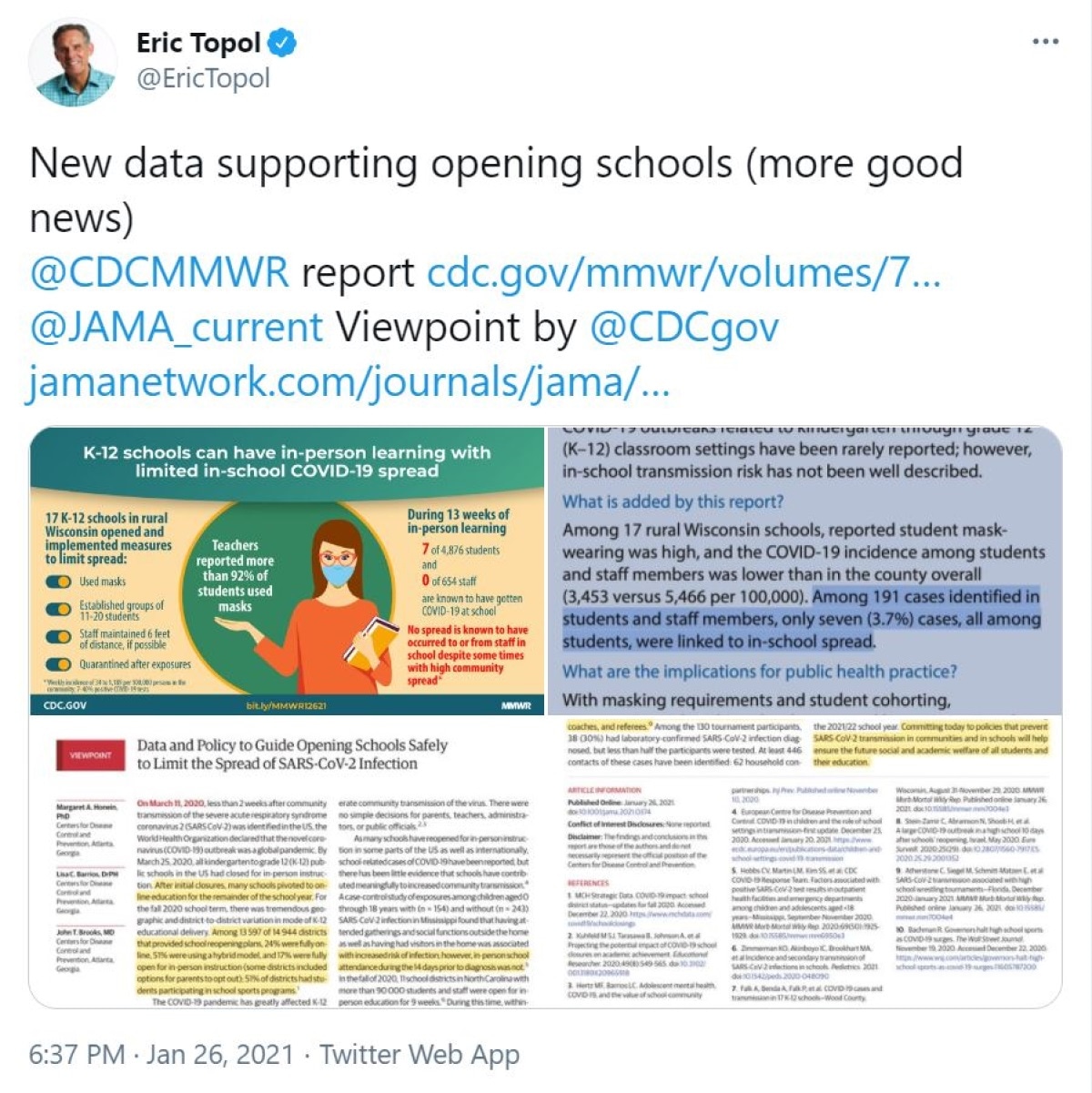 Topol has been a prominent and widely-followed commentator on the pandemic since its emergence.