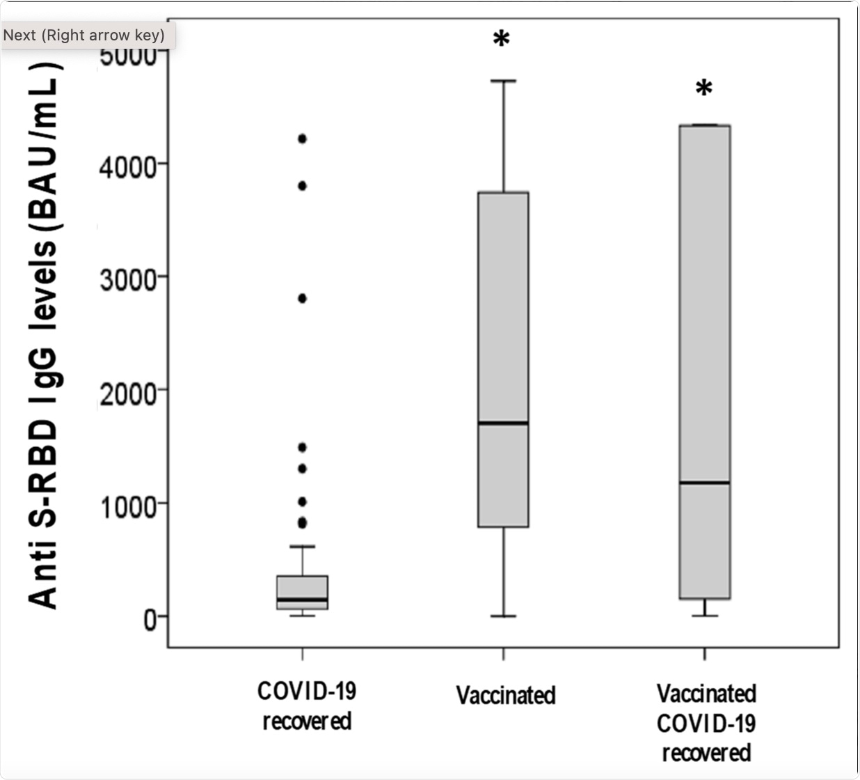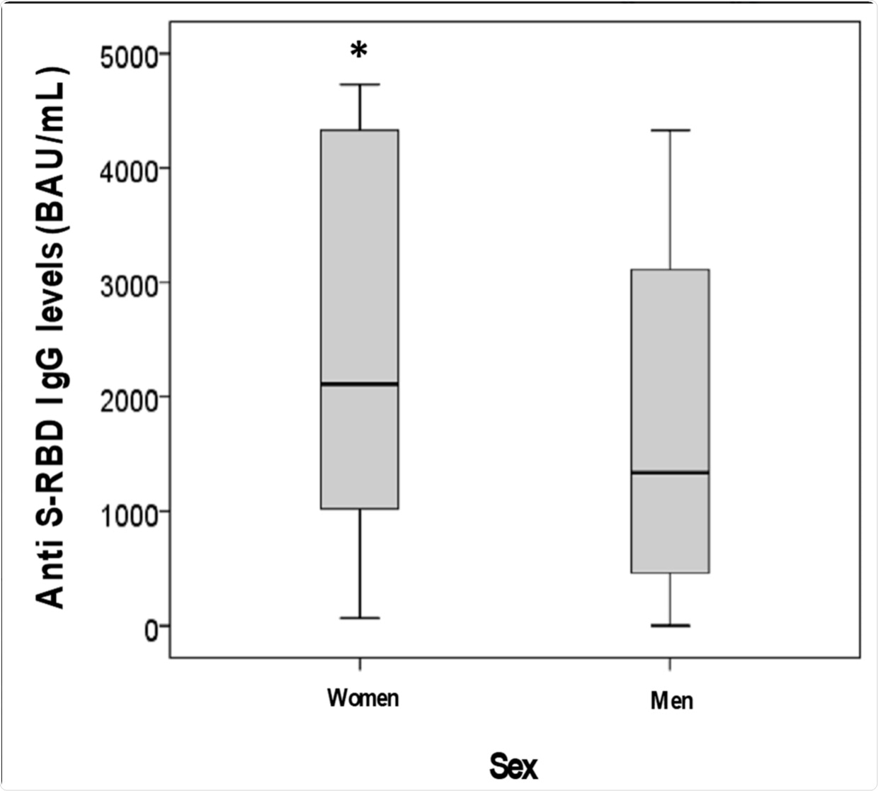 It was also reported that anti-RBD IgG levels were higher in females than males at 2,110 vs. 1,341 binding antibody units (BAU)/mL, respectively.
