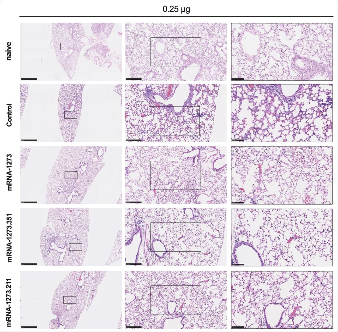 When exposed to the viral variants WA1/2020 N501Y/D614G, B.1.1.7/E484K, or B.1.351, the vaccines protected the mice against weight loss. The viral load was lower in the nose, lungs, and spleen of the mice, thereby indicating that the vaccines prevented infection in the majority of cases.