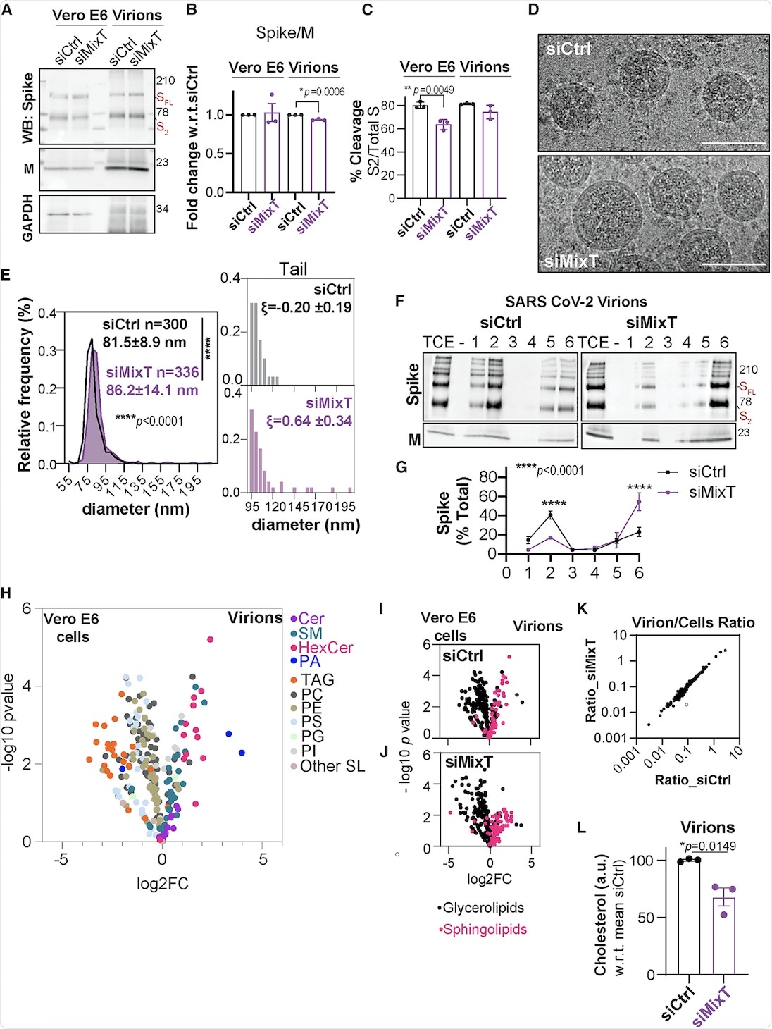 The lipid composition of SARS-CoV-2 virions showed that they were poor in glycerolipids, enriched in sphingolipids, and deprived of non-membrane lipids. Silencing of the acyltransferases, however, led to a 30% reduction in cholesterol amounts in the virion.
