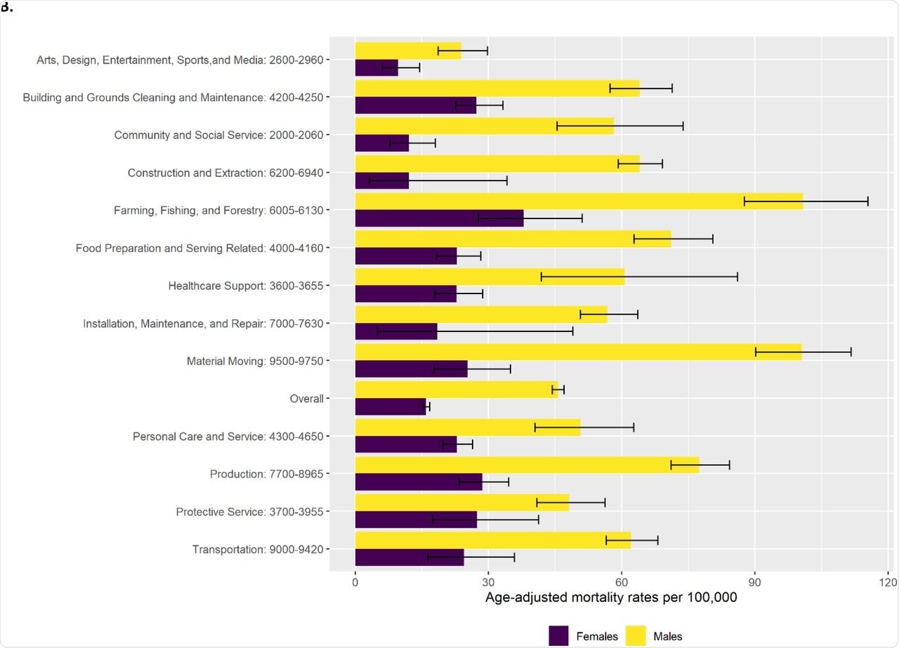 For detailed information of the decedent, the researchers used the U.S. Census Bureau’s 2019 American Community Survey (ACS) Public Use Microdata Sample files for California. They aggregated the deaths at the occupational group level: 1) overall, 2) by sex, and 3) by race/ethnicity to calculate age-adjusted rates.