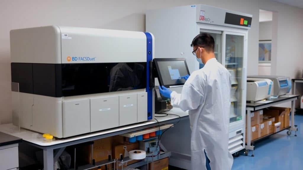 Cerba Research has flow cytometry capability around the globe, operating in Europe, Africa, Australia, US, Taiwan and China. We have access to 12C BD Lyric platform on almost all sites (Australia, Europe, US, Asia), allowing the organization to offer global transparency. Besides instrumental standardization, we work with global standardized validation procedures, acquisition and analysis templates and SOPs. Besides the 12C Lyric instruments, we offer flow on other platforms as well, such as +40 multicolor flow on Cytek Aurora in EU and US.