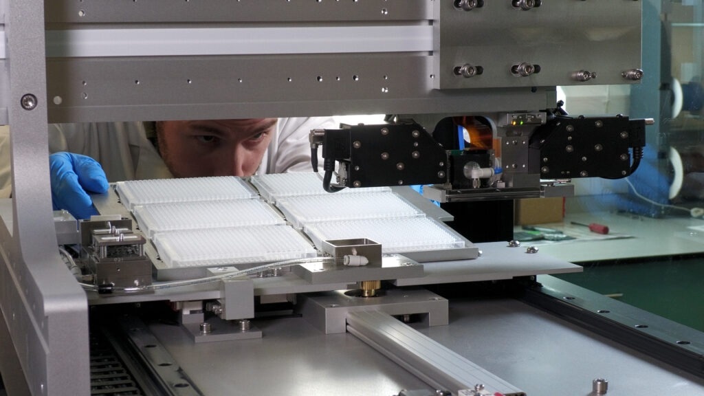 Arrayjet’s SMM platform harnesses patented inkjet technology for printing and coupling entire small molecule compound libraries onto functionalised surfaces at unparalleled throughput. Inline optics and AI-driven software validate deposition in real-time to guarantee quality. The technology also enables spot-on-spot printing for combinatorial library screening, generating millions of data points per week.