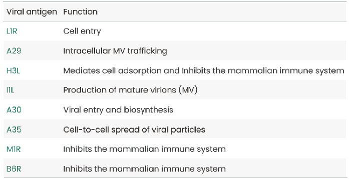 Table 1. Known Mpox Virus Antigens and Their Roles in Viral Infection. Source: Sino Biological