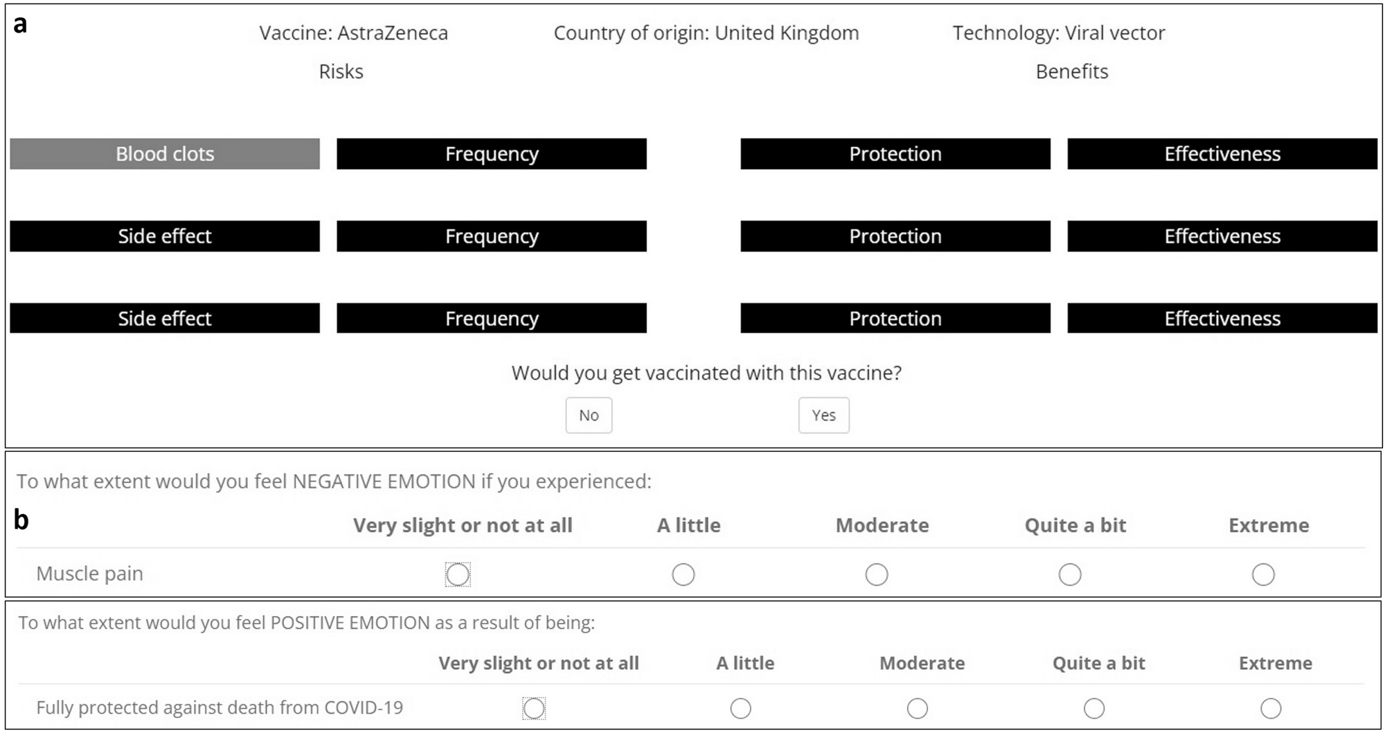 Notably, all group participants were likely to read the side effects and benefits section of the provided vaccine information. However, all three groups displayed 'probability neglect,' wherein the probabilities of side effects and benefits occurring were ignored.