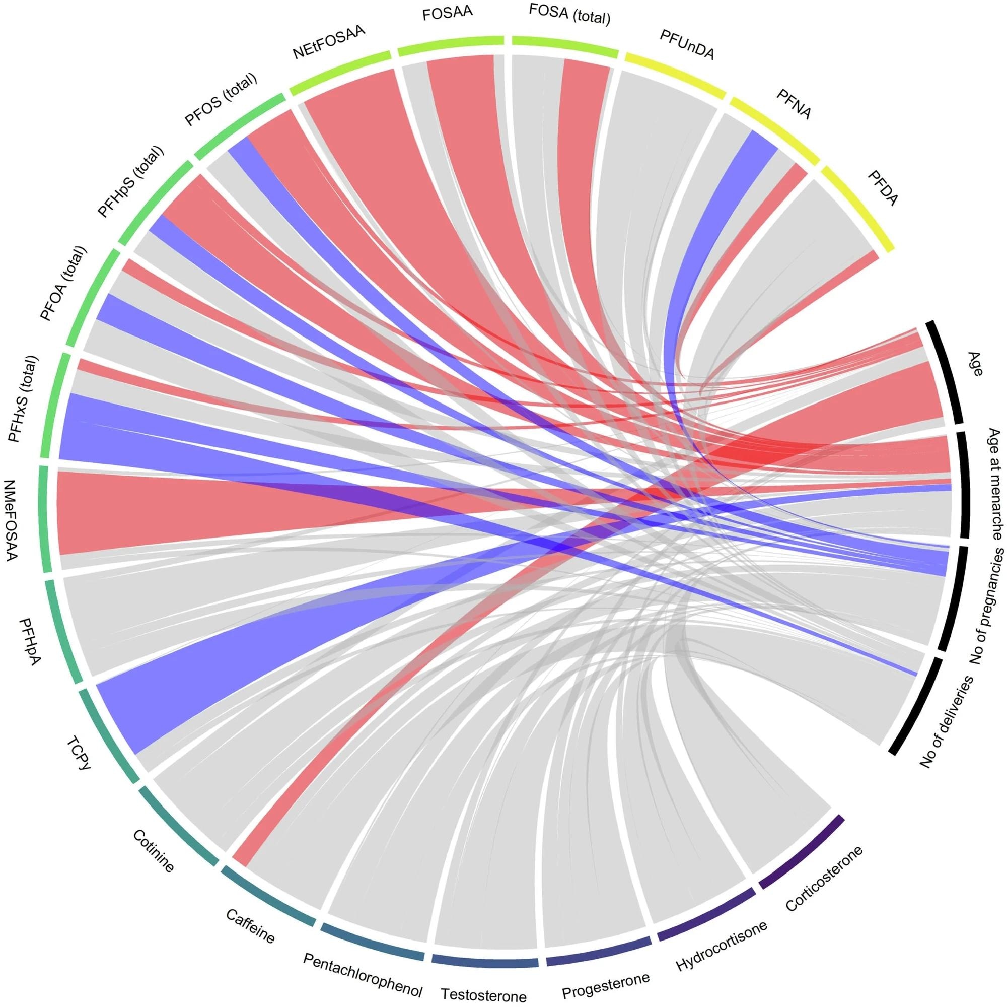 Statistical analyses, including linear mixed-effects models, examined associations between reproductive factors and chemical levels. Rigorous data adjustments accounted for potential confounders like birth year and sampling year. Correlations highlighted the possible influence of age, parity, and age at menarche on chemical exposures.