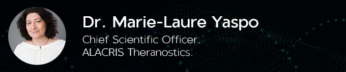 Dr. Marie-Laure Yaspo undertook her postdoctoral research at the Imperial Cancer Research Fund in London, UK. Since 1996, she has led a research group at the Max Planck Institute for Molecular Genetics (MPIMG) in Berlin. Dr. Yaspo is the Founder and CEO of Alacris Theranostics GmbH.