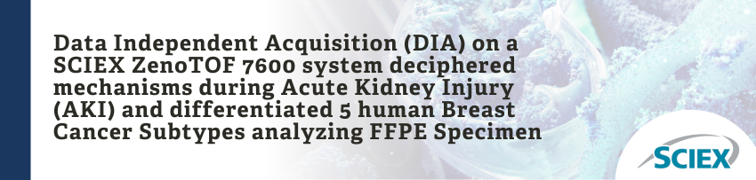 She discusses how her lab at the Buck Institute for Research on Aging, utilized the latest high-resolution mass spectrometry solution from SCIEX, the ZenoTOF 7600 system, and a novel high-sensitivity data independent acquisition workflow, Zeno SWATH DIA, to study both a mouse acute kidney injury model (AKI) and a human breast cancer cohort that consisted of FFPE-preserved specimen of 5 cancer subtypes and healthy controls.
