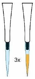 To aspirate the desired volume, the pipette should be dipped just below the liquid surface. If the tip is dipped too much, there is an increasing risk of carry-over as liquid drops can cling to the outer surface of the tip.
