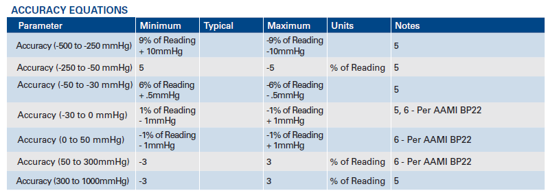 The BP Series Extended provides a broader pressure range for measurements from -500 to 1000 mmHg and is also designed for use in applications such as ECMO.
