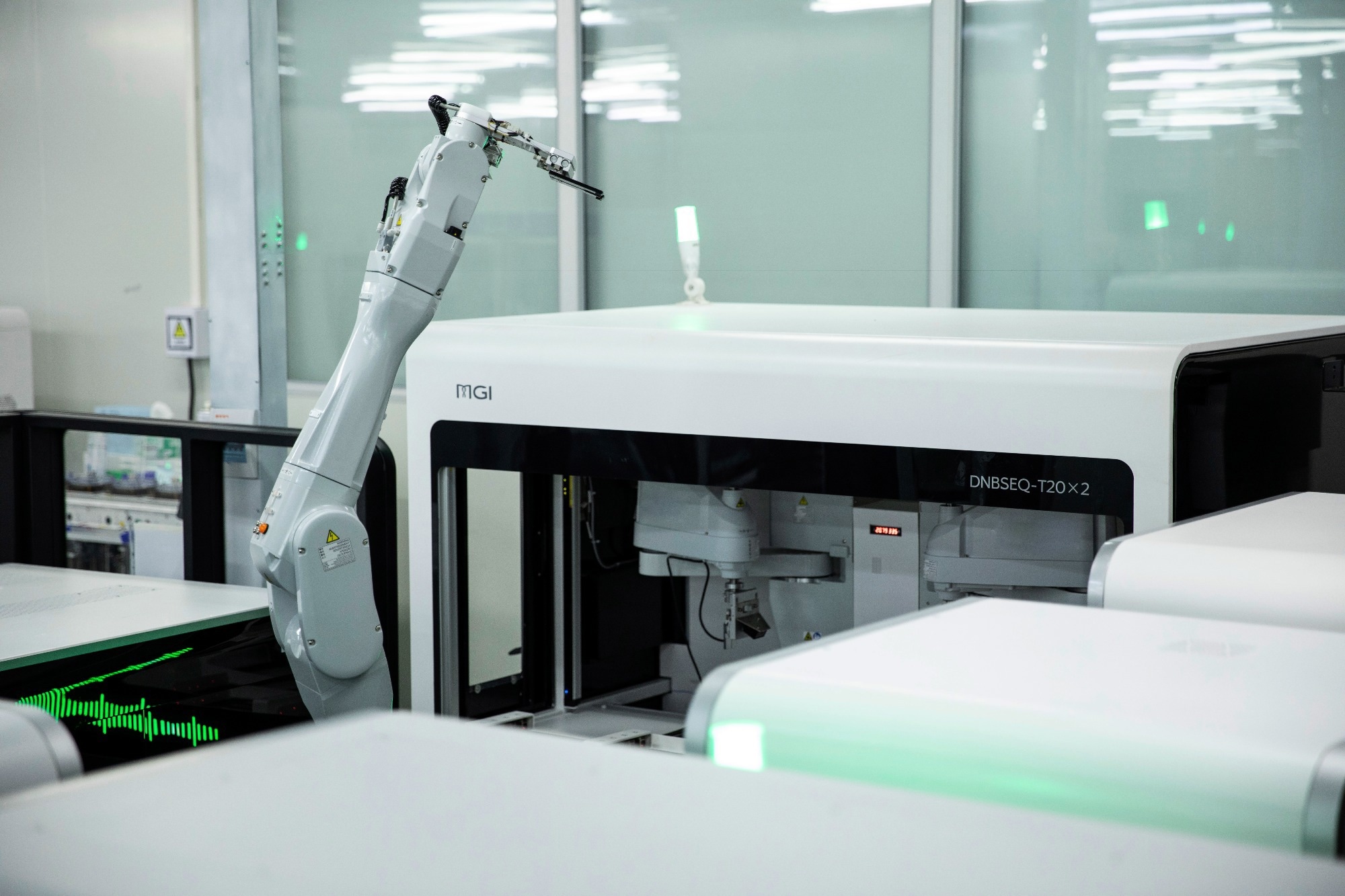 Utilizing advanced dip-immersion biochemistry, two imagers, and a rotational, robotic handling arm, one DNBSEQ-T20×2 sequencer can assay six slides simultaneously. This can provide 42 Tb of data per run with PE100 and up to 72 Tb per run with PE150. With DNBSEQ-T20×2, MGI can now produce the highest throughput per run with high quality sequencing data.