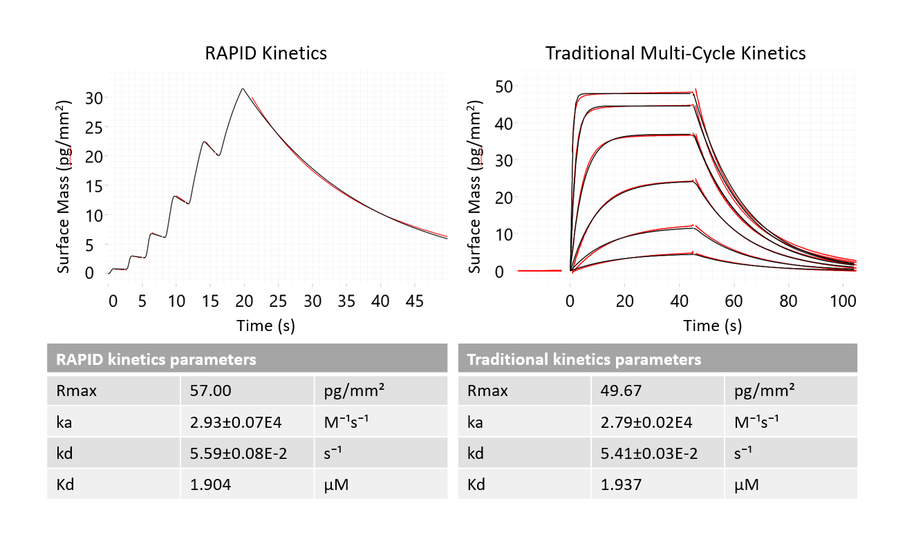 Owing to the unique and powerful analysis software, direct kinetics, it is possible to recover complex kinetic information in just a single click. Making use of the GCI technology, the system has excellent signal-to-noise and so can work with low immobilization levels and is also compatible with large ligand-to-analyte molecular weight ratios.