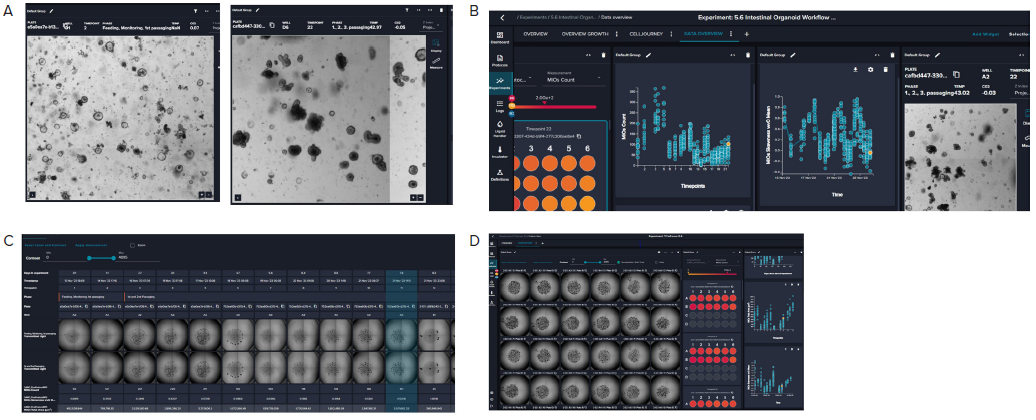 The user defines routine imaging of the plate protocols. Real-time image analysis is powered by a pre-trained deep-learning-based model (or customized model). Data analytics tools enable the view of organoids' growth over time. Results can be used to activate other processes/protocols.
