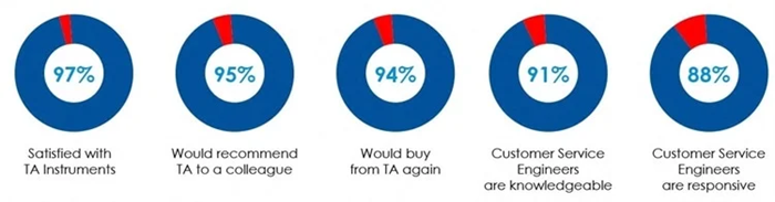 TA Instruments reputation for high performance products, quality manufacturing, and unbeatable after sales support is why more customers recommend TA products to their colleagues, compared to any other vendor. Here is what TA customers say about TA in a recent survey: