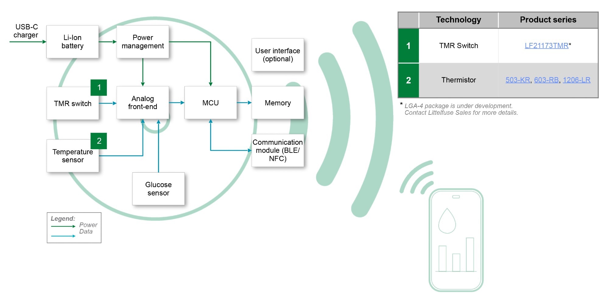 Figure 2. Continuous Glucose Monitor (CGM). Image Credit: Littelfuse